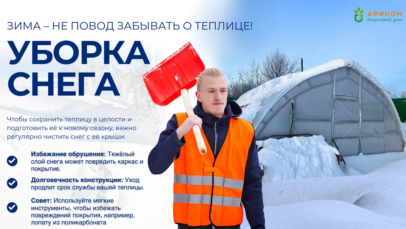 Совет: Всегда очищайте снег аккуратно, чтобы не повредить покрытие и конструкцию теплицы.