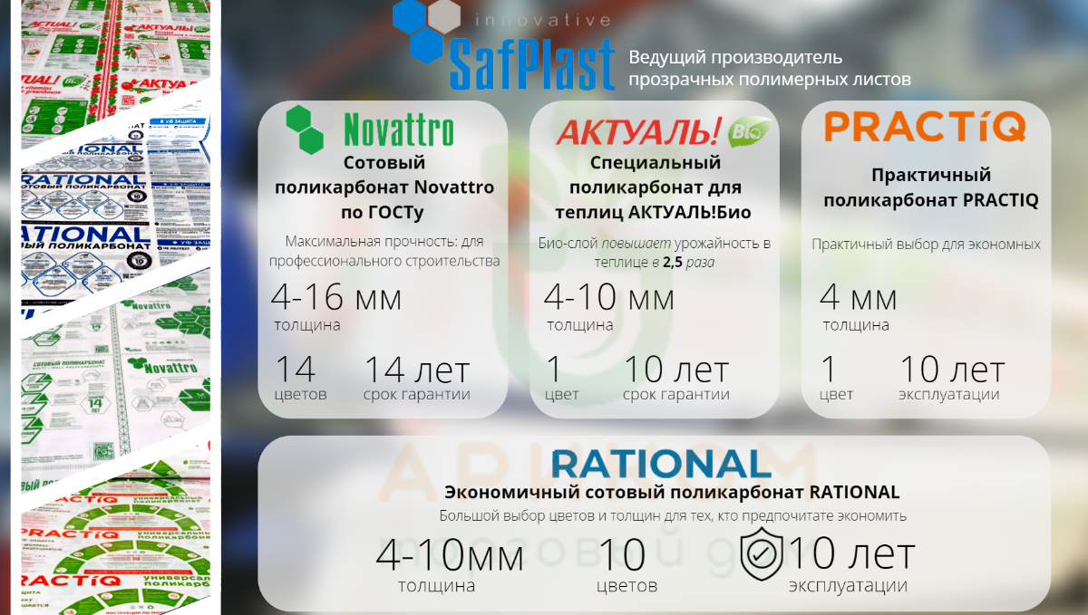 Сотовый поликарбонат от ведущего завода - для разных целей. Все позиции в наличии на складе. Оформить заказ можно в Каталоге: Сотовый поликарбонат Сотовый поликарбонат,Завод «СафПласт» Поделиться