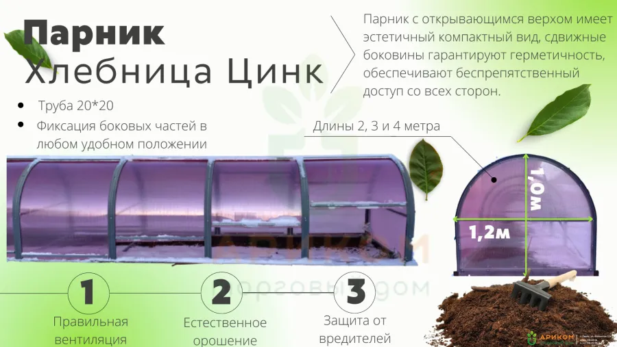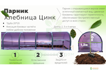 Парник "Хлебница Цинк" с открывающейся крышей