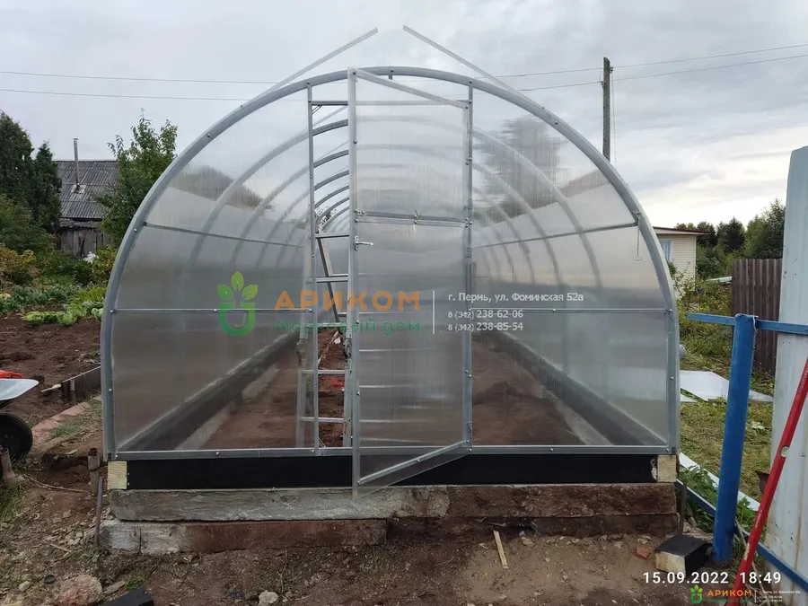 Сборка каркаса. Дополнительно смонтирована перегородка по середине теплицы.
