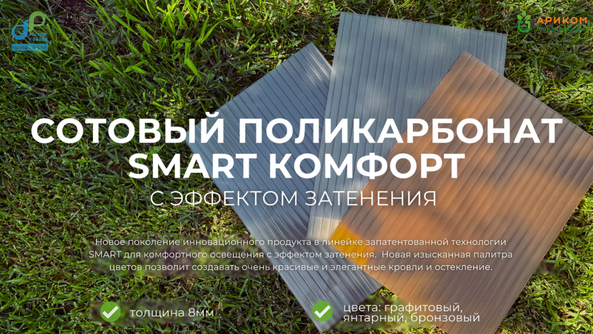 Сотовый поликарбонат SMART Комфорт с эффектом затенения 8мм бронзовый